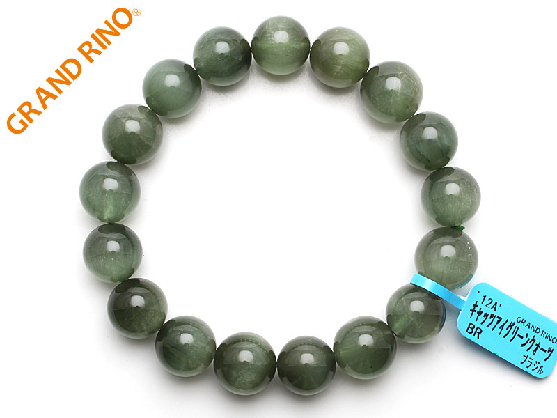 キャッツアイ アクチノライト イン クォーツ 12A ブレス 12mmx17玉44g [1155/*5] 内周:17cm