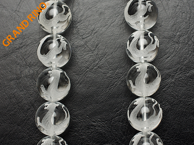 ロッククリスタル(クォーツ) 白虎彫り物 ビーズ (タイプ2) 10MM