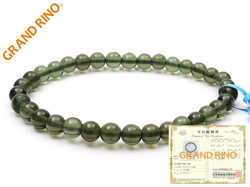 【鑑別書付 MC2523】モルダバイト GA ブレス 6-7MMX34玉 9.53 GM 2206