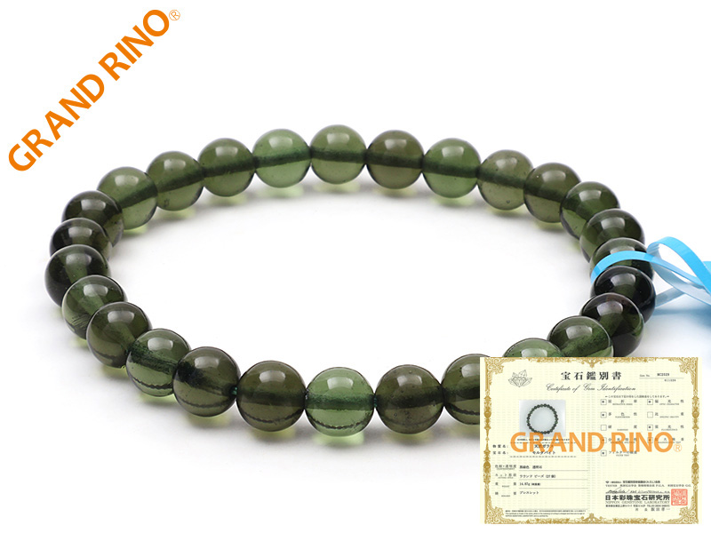 【鑑別書付 MC2530】モルダバイト GA ブレス 8MMX26玉 15.91 GM 2206