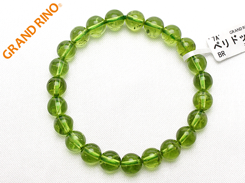 ペリドット(オリビン) 7A ブレス ≪中国≫ 8mmx23玉22g [1037/*10] 内周:16cm