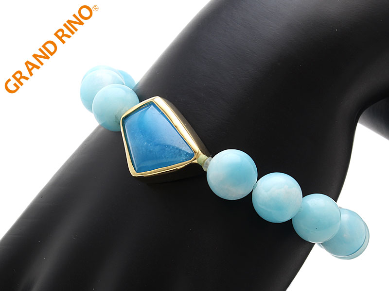 【GRAND GEMシリーズ】エスペランサ(ヘミモルファイト)&ブルーアラゴナイト -/GA K18ブレス(YG) 10MMX17玉 12.56 CT 1345/#33-1436/#1