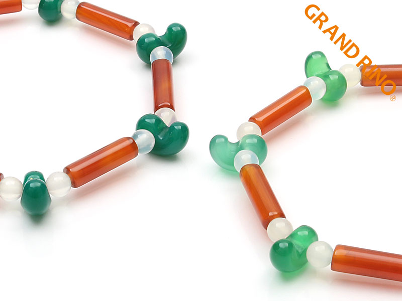 美保岐玉 グリーンアゲート&レッドアゲート&ホワイトアゲート ブレス (桐箱付) ミニ(M)