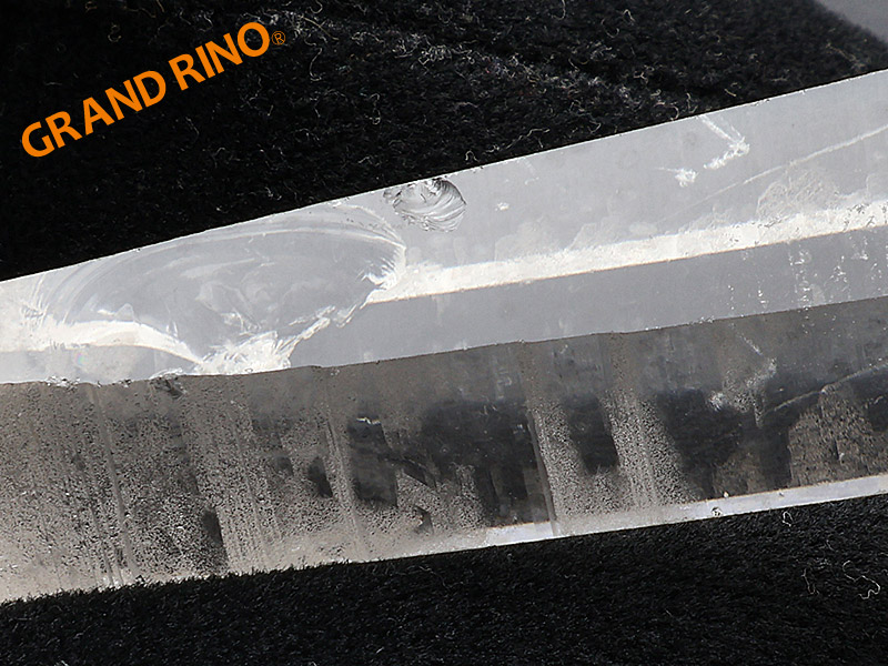 特徴は結晶柱面の3面にバーコード状の条線"レムリアンリッジ"が刻まれていることです。