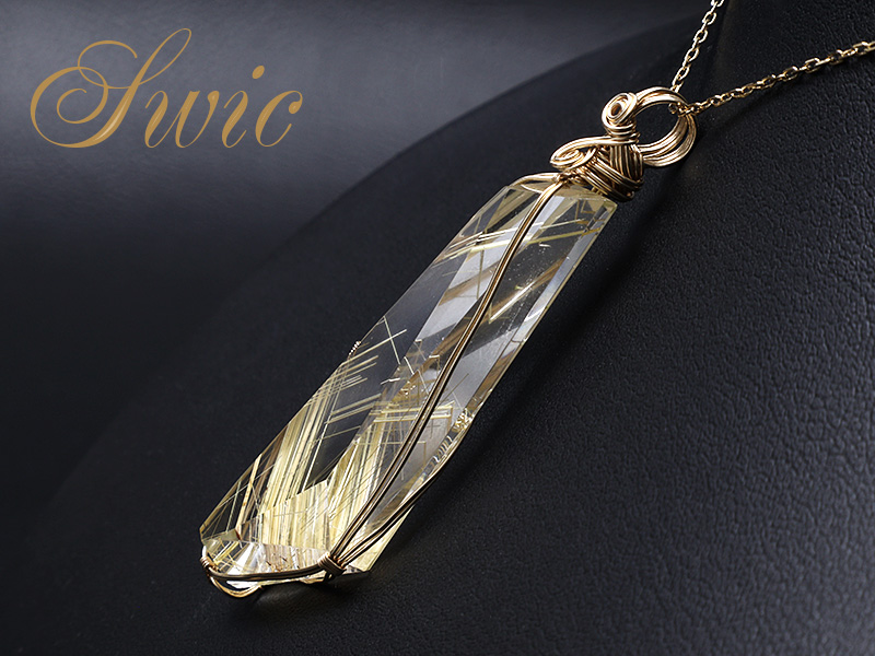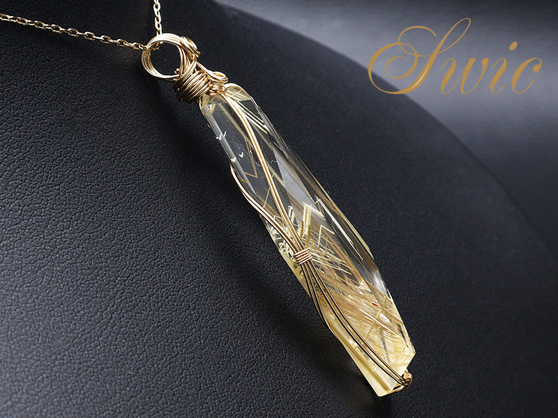 【Swic】ゴールデンルチルクォーツ 20A カット K14GFPT (12) 全長:56MM(石サイズ:20X48MM) 8.00 GM 2203