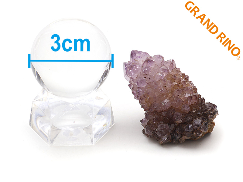 - 表面が小さな結晶でおおわれた、ラベンダーカラーのカクタスアメシストです。サボテン(カクタス)のような結晶に光があたり、キラキラと輝きます。